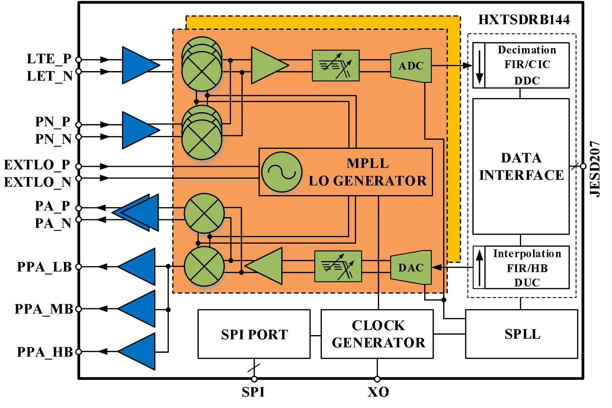 XL9361 宽带可配置射频芯片 功能框图